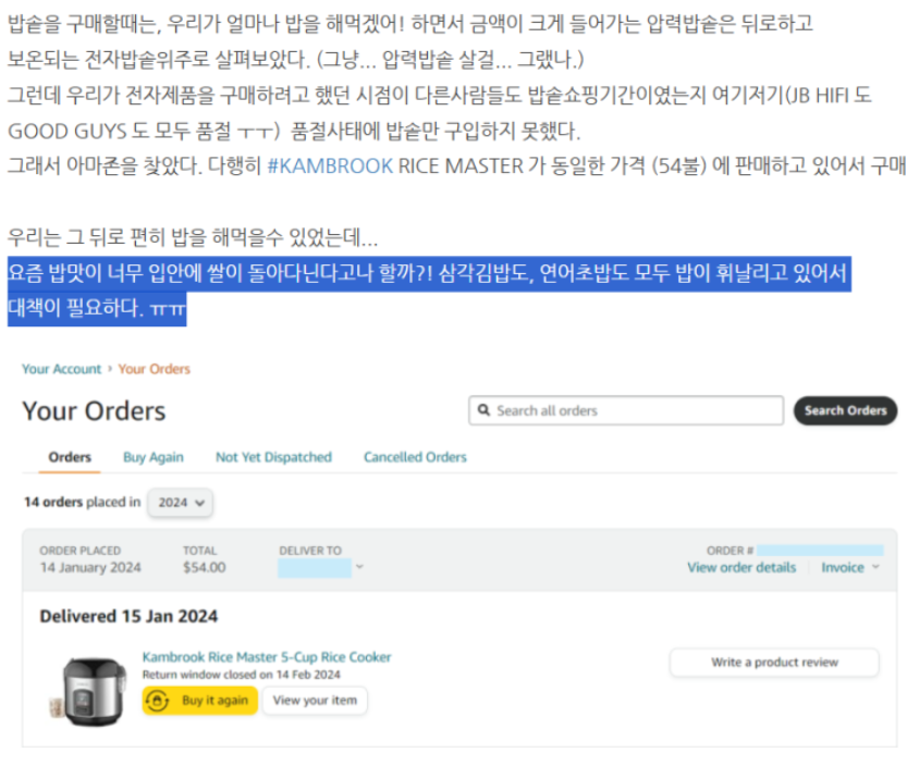 브리즈번_가족유학.vol.45_호주에서 구매한 전자제품_밥이 너무 고슬고슬해